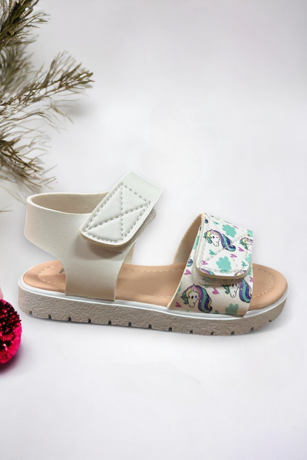 – Beyaz renkli tasarımı ile her kıyafetle kolayca uyum sağlayan cırt cırtlı baskılı kız bebe sandalet.; – Bantlı bağlama şekli sayesinde bebeğinizin ayaklarına tam oturur ve rahat bir kullanım sunar.; – Suni deri dış materyali ile dayanıklılık ve şık bir görünüm bir arada.; – Kadın ve kız çocukları için ideal, casual ve günlük kullanıma uygun tasarım.; – Düz topuklu yapısı ile bebeğinizin ilk adımlarını desteklerken konforlu bir yürüyüş deneyimi sağlar.; – PVC taban materyali sayesinde kaymaz özellikte olup güvenli adımlar atmasını destekler.; – %100 suni deriden üretilmiş olup uzun ömürlü kullanım vaat eder.; – Type 4 yıkama talimatına uygun şekilde temizlenebilir; böylece hijyenik kalmasını kolayca sağlayabilirsiniz.; – İç tabanın da suni deriden yapılması ayağın rahat etmesini sağlarken, TR menşei ile yerel üretim kalitesini yansıtır.; – Kısa topuklu (1 – 4 cm) tasarımı ile bebeğinizin ayak sağlığına özen gösterirken stil sahibi görünüm kazandırır.; – Baskılı deseniyle göz alıcı detaylara sahip olup, lisanslı ürün olarak kaliteyi garanti eder.; – Young koleksiyonuna ait bu sandaletler gençlerin enerjisini ve dinamizmini yansıtır.; – Sürdürülebilirlik detayları ile çevre dostu bir seçim yapmış olursunuz.; – 21 beden seçeneğiyle bebeğinizin ayağına tam uyum sağlayacak şekilde tasarlanmıştır.